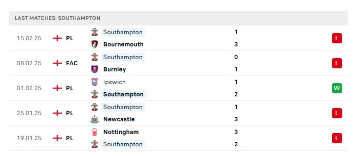 • Phong độ gần đây  Southampton