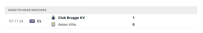 Lịch sử đối đầu Club Brugge vs Aston Villa