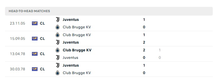 Lịch sử đối đầu Club Brugge vs Juventus