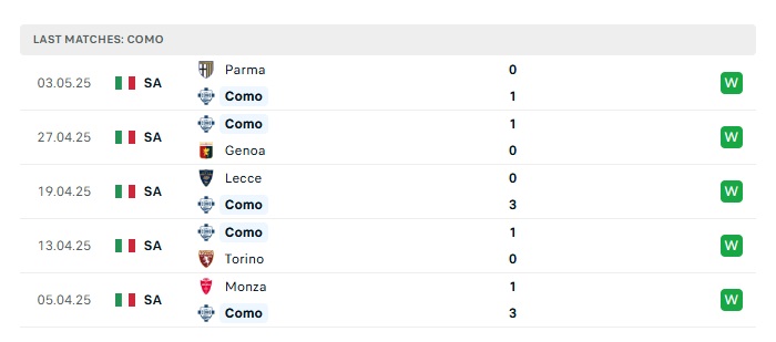 • Phong độ gần đây Como