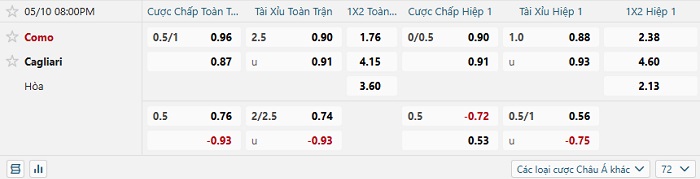 Soi kèo châu Á, kèo Como vs Cagliari