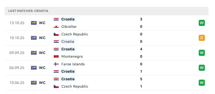 • Phong độ gần đây Croatia