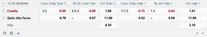 Soi kèo châu Á, kèo Croatia vs Đảo Faroe