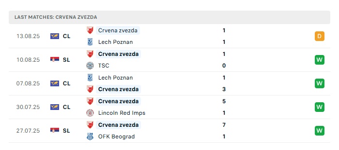 Phong độ gần đây Crvena Zvezda  vs Pafos