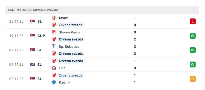 Phong độ gần đây Crvena Zvezda vs Steaua Bucuresti