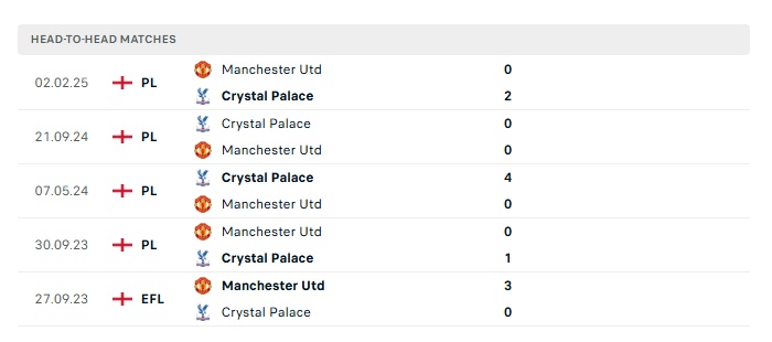 Lịch sử đối đầu Crystal Palace vs Man Utd