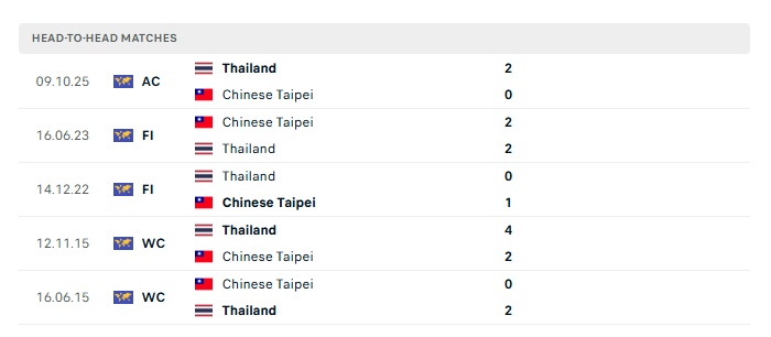 Lịch sử đối đầu Đài Loan vs Thái Lan