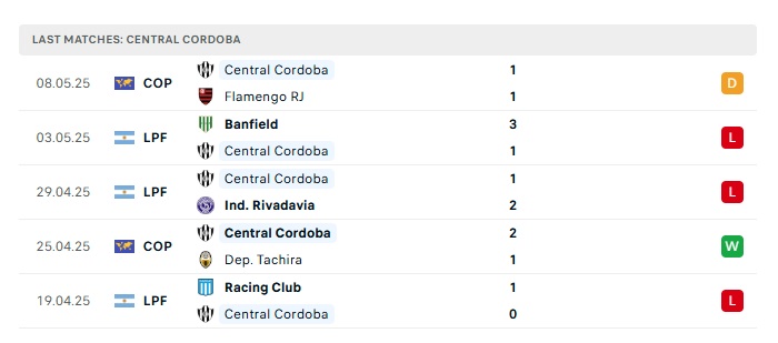 Phong độ gần đây Dep.Tachira vs Cordoba