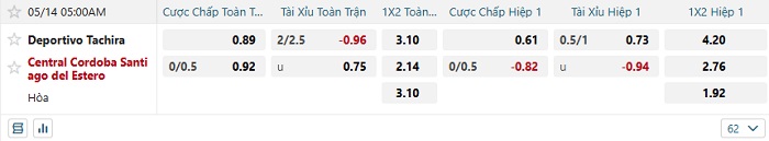 Bảng tỷ lệ kèo bóng đá hôm nay Dep.Tachira vs Cordoba