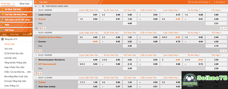 Chọn giải đấu hoặc giải đấu phù hợp với nhu cầu. Đồng thời, bạn cần đảm bảo luôn thu thập đủ tất cả những thông tin về 2 đội mà bạn muốn cá cược.