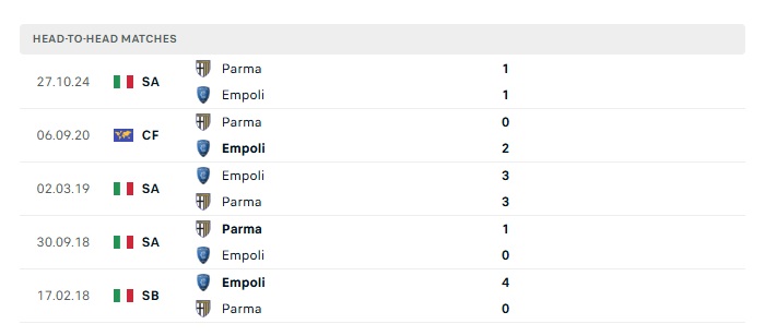 • Kèo tỷ số H2 Empoli vs Parma: 0-0