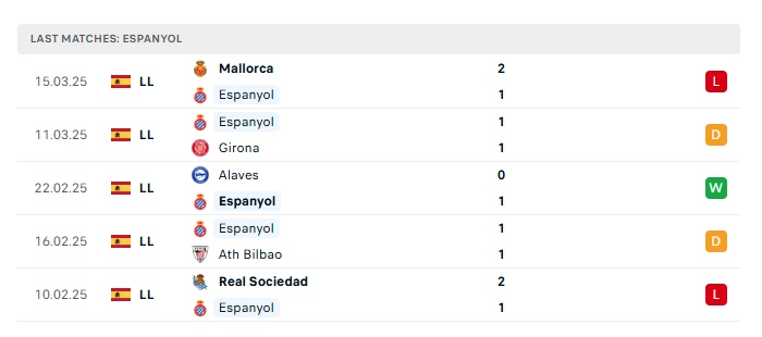 Phong độ gần đây Espanyol vs Atletico Madrid