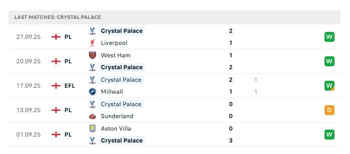 - Phong độ gần đây Crystal Palace