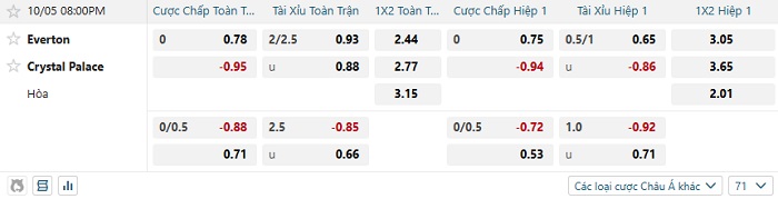 Soi kèo châu Á, kèo Everton vs Crystal Palace