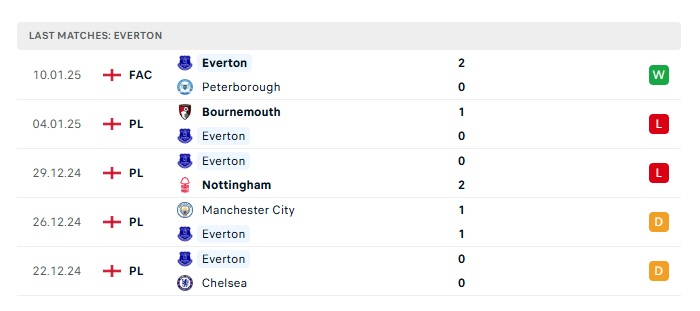• Phong độ gần đây Everton