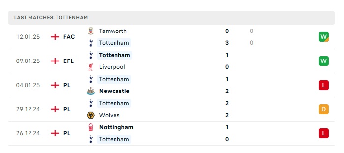 • Phong độ gần đây Tottenham