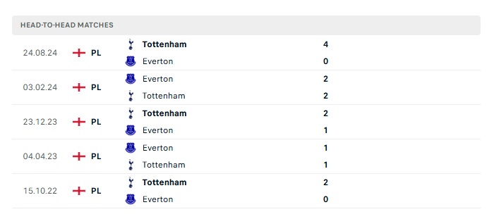 Phong độ gần đây Everton vs Tottenham