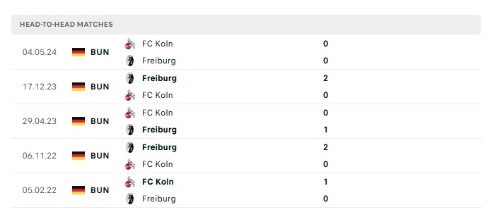 • Kèo tỷ số H2 FC Koln vs Freiburg: 1-0