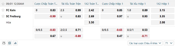 Soi kèo châu Á, kèo FC Koln vs Freiburg