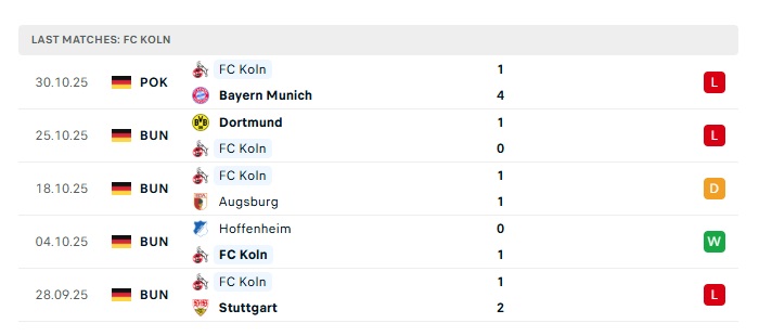 Dù không được đánh giá cao nhưng Koln hiện tại vẫn đang thi đấu vô cùng tốt và ấn tượng. Hiện tại, chủ nhà Koln đang có mặt ở vị trí thứ 8 trên BXH cùng với 11 điểm sau 8 vòng đấu đã qua. Trong khi đó thì Hamburger lúc này đang chỉ có mặt ở vị trí thứ 13 trên BXH với chỉ 8 điểm. Như vậy, sẽ cực kỳ khó để đội chủ nhà Koln bị cầm hòa hay thất bại trong trận đấu này nếu họ thi đấu đúng sức.