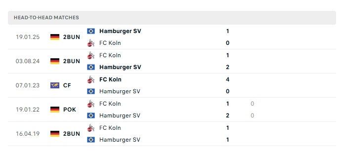 • Kèo tỷ số H2 FC Koln vs Hamburger: 1-0