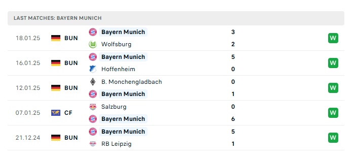 - Phong độ gần đây Bayern Munich