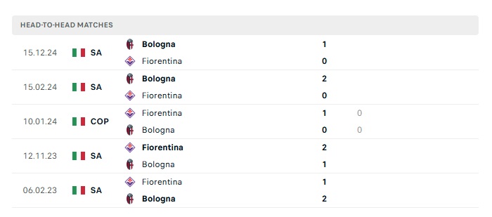 - Kèo tỷ số H2 Fiorentina vs Bologna: 2-1