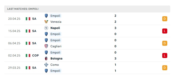 - Phong độ gần đây Empoli
