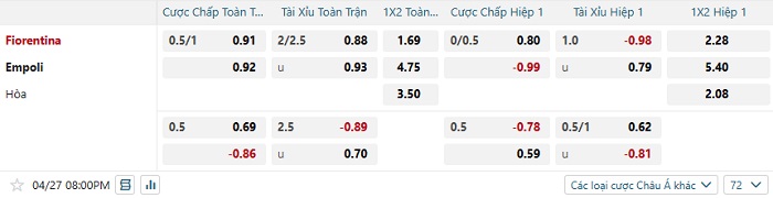 Soi kèo châu Á, kèo Fiorentina vs Empoli