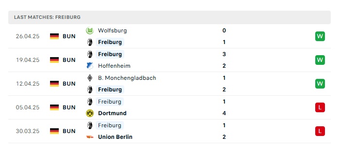 Phong độ gần đây Freiburg vs Bayer Leverkusen
