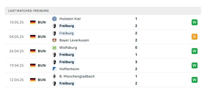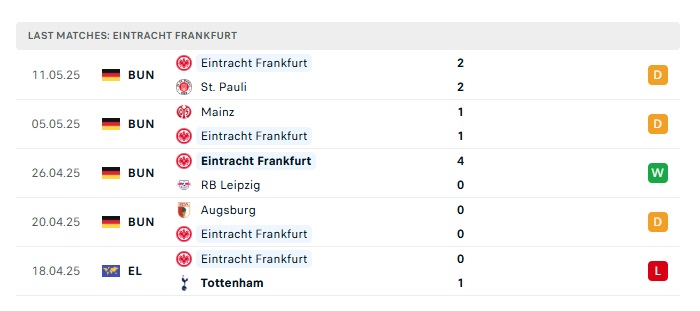 Phong độ gần đây Freiburg  vs Ein.Frankfurt