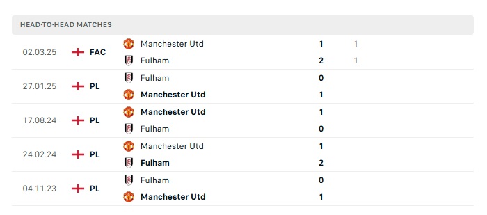 - Kèo tỷ số H1 Fulham vs Man Utd: 0-0