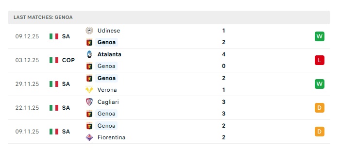 Hoàn toàn không ổn trong thời gian qua, Genoa rất khó để có điểm trong ngày thi đấu hôm nay. Hiện tại, chủ nhà Genoa đang có mặt ở vị trí thứ 14 trên BXH cùng 14 điểm sau 14 vòng đã qua. Trong khi đó thì Inter Milan đang có được 30 điểm cùng vị trí thứ 3 trên BXH sau 14 vòng đã qua. Do đó, các chuyên gia đều tin rằng trận đấu hôm nay chắc chắn sẽ có đội khách Inter Milan là bên sẽ giành chiến thắng trước đối thủ.