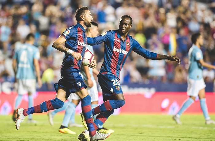 Levante: Ryan; Toljan, Elgezabel, Moreno, Sánchez; Alvarez, Vencedor, Rey, Brugué; Eyong, Romero.