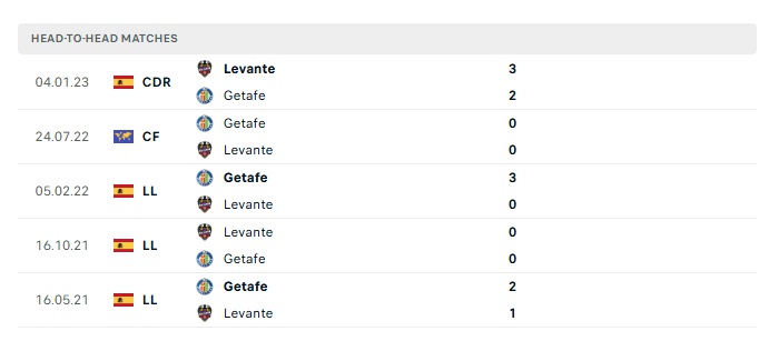 Lịch sử đối đầu Getafe vs Levante