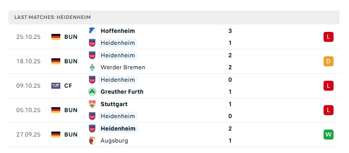 • Phong độ gần đây Heidenheim
