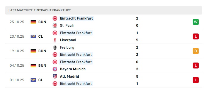 • Phong độ gần đây Eintracht Frankfurt