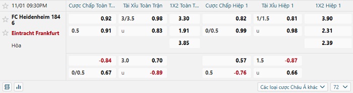Soi kèo châu Á, kèo Heidenheim vs Eintracht Frankfurt