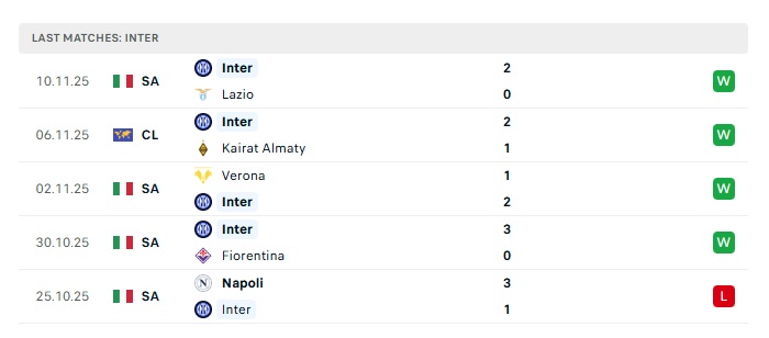 • Phong độ gần đây Inter Milan