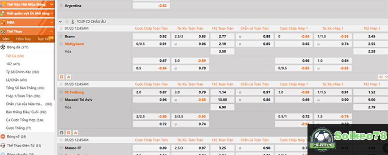 Sau đó, bạn chỉ cần tìm hoặc lọc ra danh sách các trận đấu sắp diễn ra của giải bóng đá euro. Mỗi trận đấu sẽ có đầy đủ các nhóm kèo phổ biến. Mỗi kèo cược sẽ có từng mức tỷ lệ cược khác nhau và được cập nhật thông số thường xuyên.