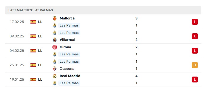- Phong độ gần đây Las Palmas