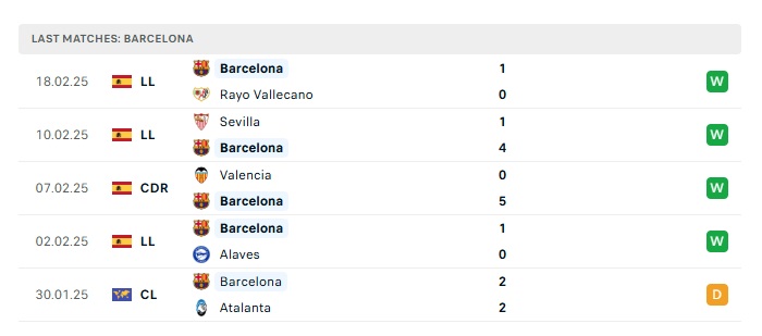 - Phong độ gần đây Barcelona