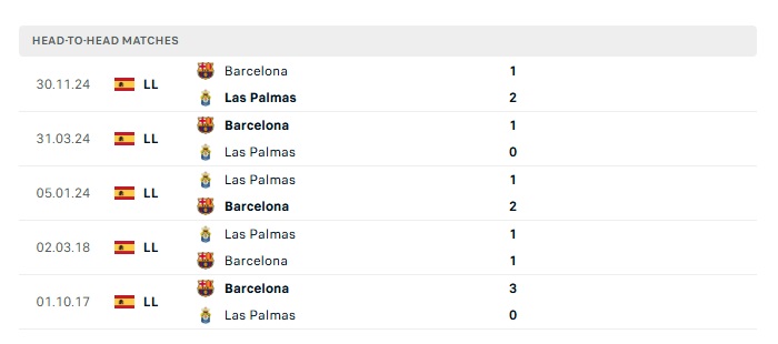 Lịch sử đối đầu Las Palmas vs Barcelona