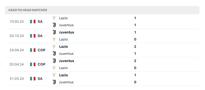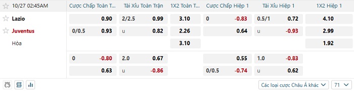 • Kèo tỷ số H2 Lazio vs Juventus: 0-1