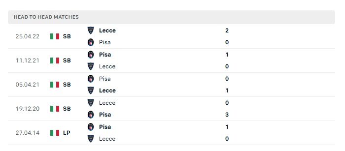 - Kèo tỷ số H2 Lecce vs Pisa: 1-0