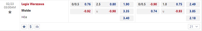 Bảng tỷ lệ kèo bóng đá Legia vs Molde