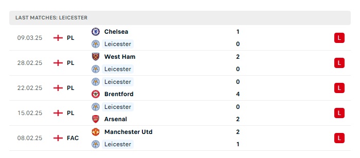 - Phong độ gần đây Leicester City