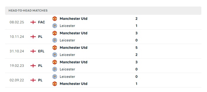 Lịch sử đối đầu Leicester City vs Man Utd