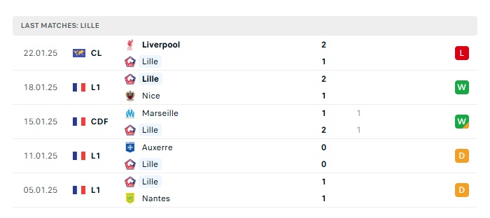 - Phong độ gần đây Lille
