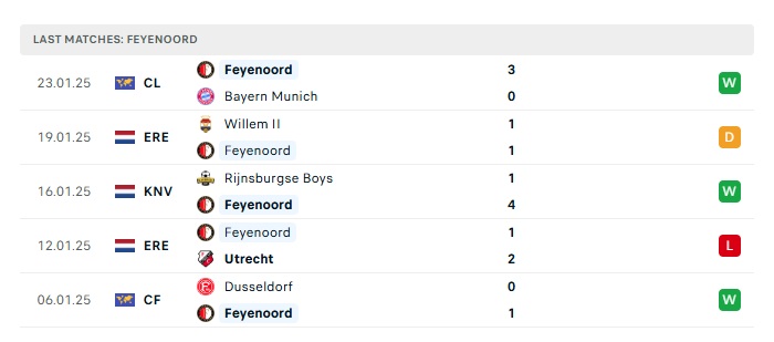 - Phong độ gần đây Feyenoord